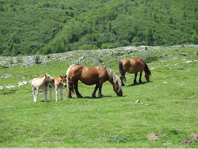- ( km 5,2 ) On trouve une piste, on la suivra vers l'Est jusqu'à rejoindre une route ( ici les VTC descendront par la route jusqu'au parking d'Irati), on la remontera à droite pour prendre une piste à gauche.
